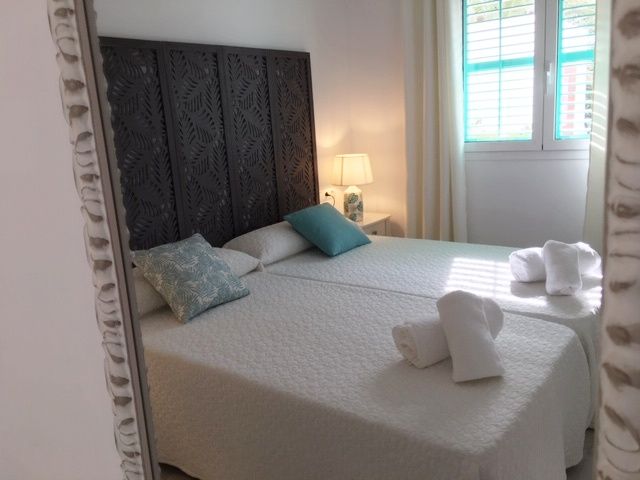 El apartamento está situado en la planta baja del edificio Roca Plana. Nada más entrar en el apartamento encontramos un dormitorio doble formado por 2 camas individuales. Dispone de un baño completo equipado con ducha.