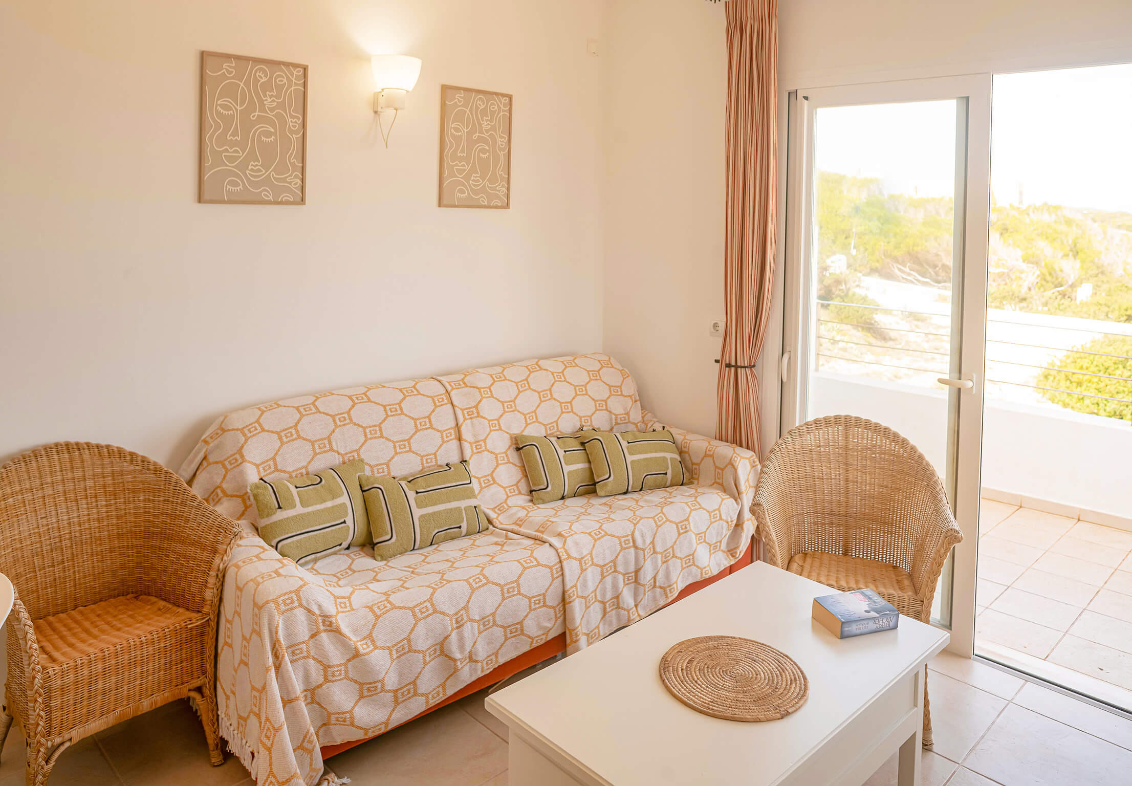 Cavall de Llevant es un complejo de apartamentos con una decoración moderna y elegante y con un estilo típicamente isleño: paredes blancas, muebles de madera y algunos toques decorativos de color. Son apartamentos que ofrecen un mobiliario de gran calidad, son cómodos y confortables.