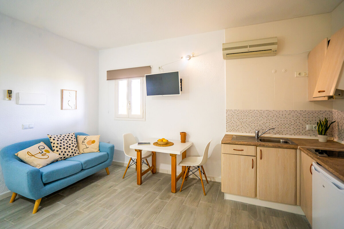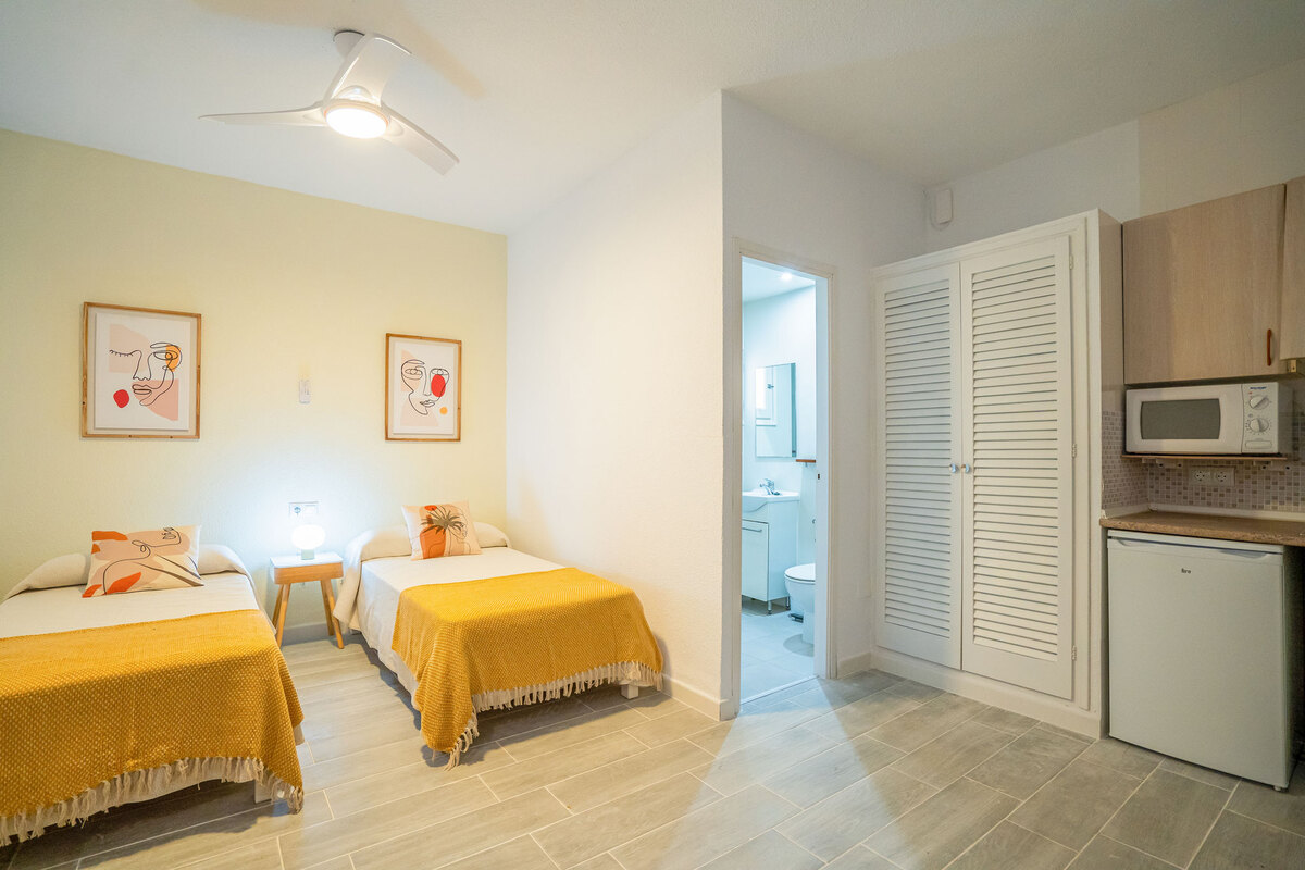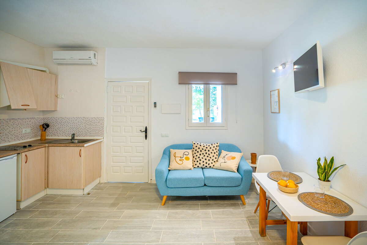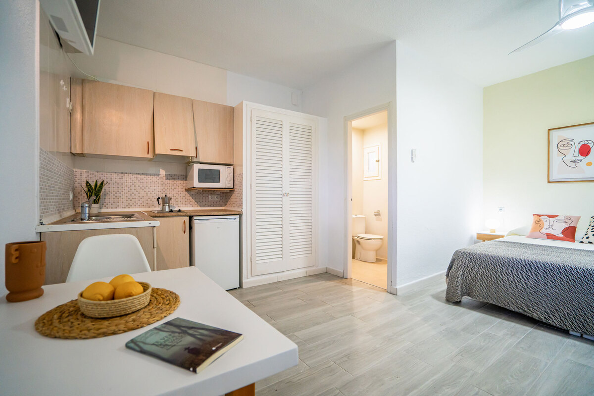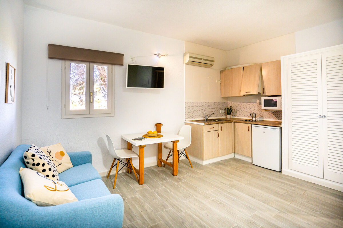 El estudio es pequeñito, pero super completo y confortable. El entorno muy cuidado y la piscina es un lujo durante las vacaciones. Nos ha gustado mucho la ubicación, instalaciones y trato del personal. Estaba todo muy limpio y cuidado, lo recomendaría 100%!