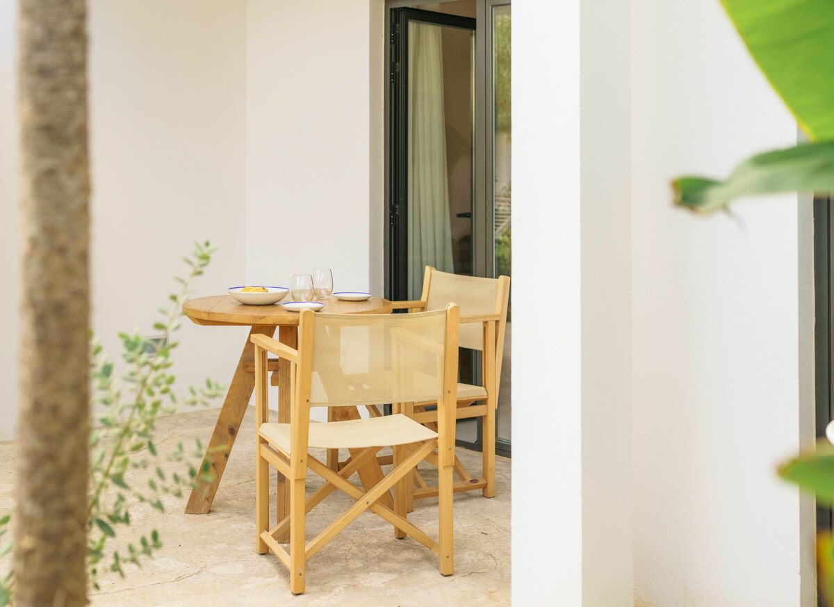 Cada apartamento dispone de una bonita terraza privada equipada con mobiliario exterior, donde poder disfrutar de desayunos o almuerzos en un ambiente de paz y tranquilidad.
