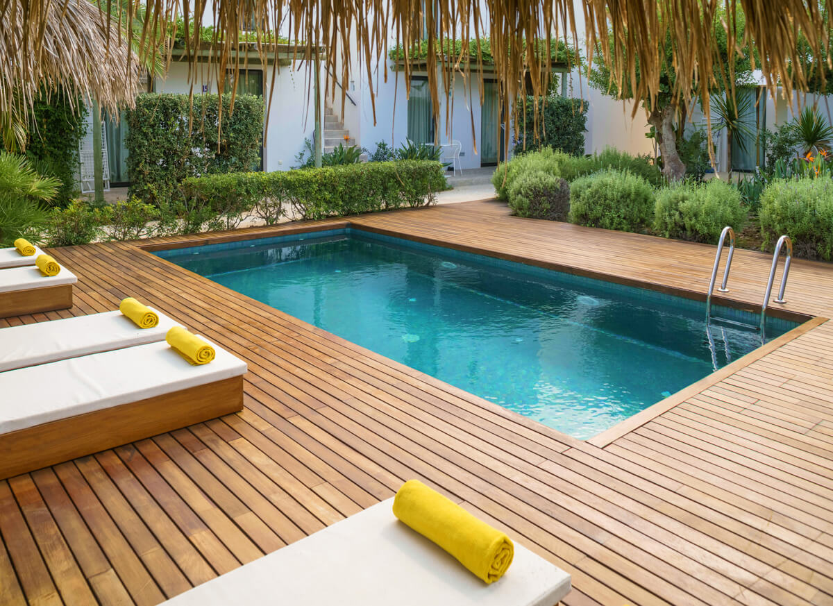 verde de las palmeras al azul de la refrescante piscina… ¡todo ello